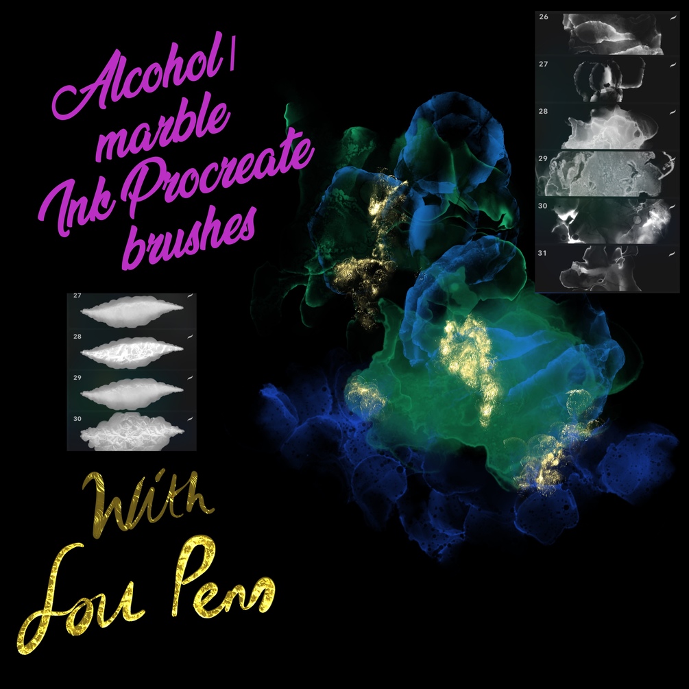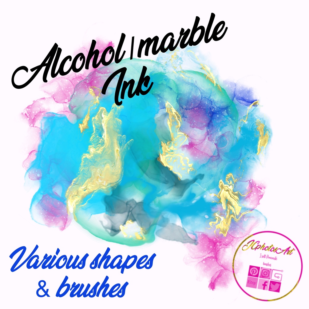 Alcohol marble ink gold foil Procreate brushes